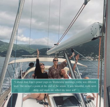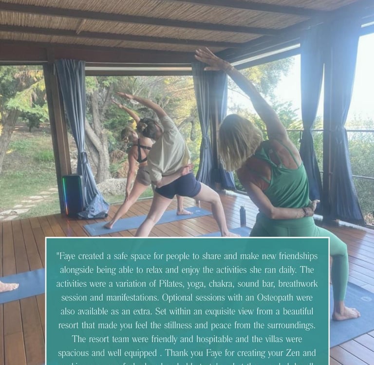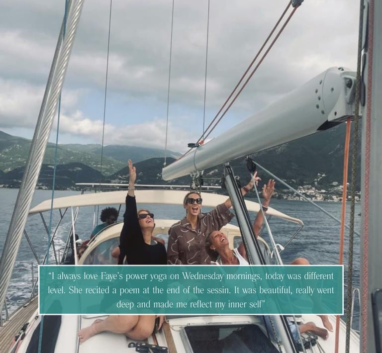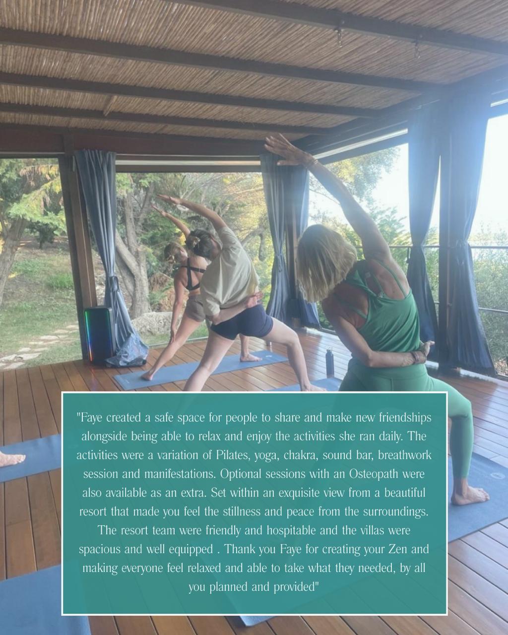 Days flowed gently between Pilates and Yoga overlooking breathtaking views, mindful workshops, sound healing and time to simply slow down and be. From boat trips across crystal-clear waters to long, relaxed meals in the sunshine, every moment was designed to nourish both body and mind.